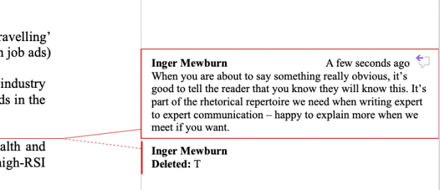 大多數專家之間的寫作動作都是微妙的,是在逐句的層次上進行的。例如這是我在最近的學生草稿上留下的評論: