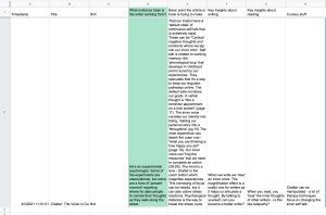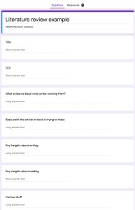 我通常使用Google表格製作文獻綜述矩陣,因為我發現Excel和MS word存在很多格式問題。最近我也在試著使用Google表格做一些長期專案。表格可以幫助我按順序捕捉想法: